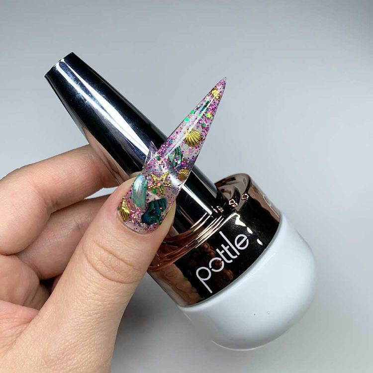 Plazma Builder Gel can be removed by soaking in acetone or using a nail file to gently buff away the gel. For extensions, you may need to file down the length before soaking.